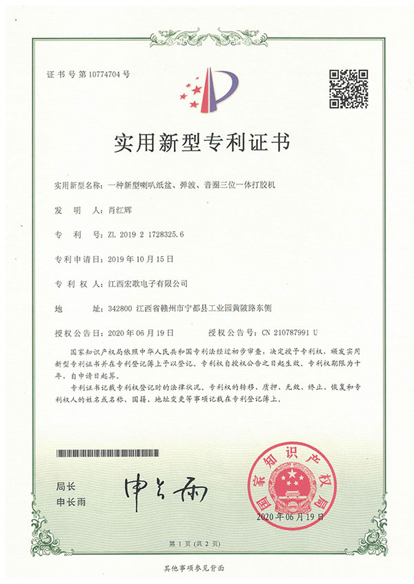 江西宏歌电子有限公司成立于2016年,自建标准厂房,占地面积约5000平方米,地址位于江西省赣州市宁都县工业园。是一家集研发、制造及销售为一体的音频产品制造商,其产品广泛用于有线/蓝牙耳机、TWS耳机、数位相机、笔记本电脑及蓝牙音箱等各类消费性电子产品,为国内外音频品牌商提供优质的喇叭单元及音频模组。