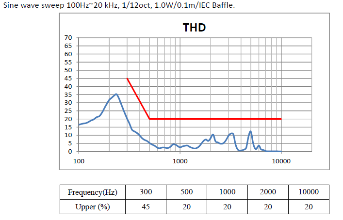 | 输出音压 | 103±3dB | at 1.0 W /0.1MAverage at 800Hz. 1.0K 1.5K 2.0KHz |